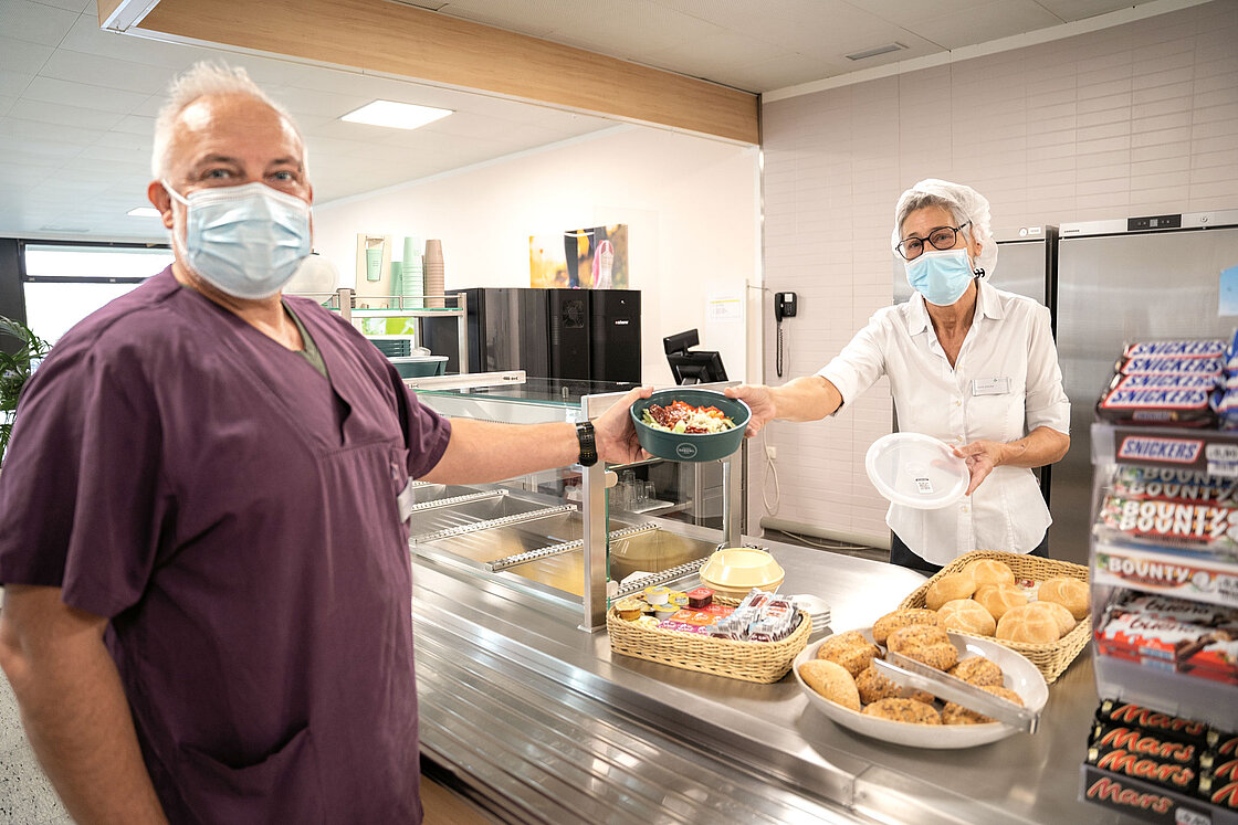 - Dadurch, dass die Boxen und Becher wiederverwendbar sind, wird nicht nur Müll vermieden, sondern die Mitarbeiter, Patienten und Besucher, die die Mehrwegprodukte nutzen, sparen durch das Pfandsystem auch Geld, indem sie dieses nicht in teure Einwegverpackungen investieren müssen, wenn sie sich etwas mitnehmen möchten.